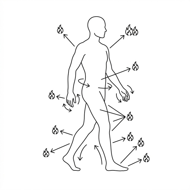 - Кислородная магистраль: Жир требует гигантских объемов кислорода для окисления (сгорания). Когда ты идешь быстрым шагом в разговорном темпе, твоя кровь насыщена кислородом до предела. Пульс слегка поднят — и тело с удовольствием вытягивает из кровотока свободные жирные кислоты, сжигая их как Медленное Топливо.